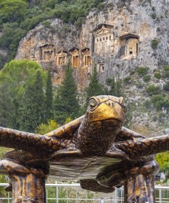 Kayalıklara oyulmuş Dalyan manzaralı Kaya mezarları Kaunos’u diğer antik kentlerden farklılaştırıyor. İlk kez Kaunos’ta görülen tapınak cepheli kaya mezarları Urartu, Frig ve Likya bölgelerindeki kaya mezarı cephe mimarisinden farklı. Kendine has görünümüyle Hellen Tapınağı cephe mimarisini yansıtmakta ve böylelikle diğer kaya mezarı tiplemelerinden uzak. Kayalıkların sağ tarafında altı adet tapınak tipli mezar, kayalara bir heykeltıraş inceliğiyle oyulmuş. Kaya mezarları tüm ihtişamıyla 2 bin 400 yıldan bu yana geçmişin dilsiz şahitleri… Dalyan Nehri’nden görülebilen Kral Mezarları’nın sırrı, Antik Çağ’da insanların mezar ne kadar yüksekte olursa tanrıya o kadar yakın olacağına olan inanç.