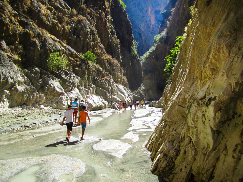 Sabah 09:00’ da Ofisimiz önünden hareket edecek servis araçlarımız ile tur programınız başlayacak. Dalyan Saklıkent arasındaki mesafe 100 km. ve takriben 1 saat 45 dakikalık bir seyahat sizi bekliyor. Dalyan Saklıkent arasında yapacağınız bu yolculuk esnasında görevli rehber arkadaşımızın vereceği bilgiler ve güzergah boyunca sizlere eşlik edecek manzara yöremizin güzelliklerini kazınacak hafızanıza. Saklıkent’e ulaşır ulaşmaz rehber eşliğinde Saklıkent Kanyonuna giriş yapacaksınız. Sizleri yeraltından fışkıran buz gibi sular karşılayacak kanyon girişinde. Bu sıcak gün ortasında buz gibi serin suların davetine hayır diyemeyeceksiniz. Rehber eşliğinde 18 km. uzunluğundaki Kanyon içinde macera dolu yürüyüşe kimler katılmak istiyor? Spor ayakkabı ya da sandaletler giyilecek, şırıl şırıl akan serin sular içinde yürüyüş başlıyor, sizlere düşen kendinizi bu maceranın kollarına bırakmak. Kanyon yürüyüşüne katılmak istemeyen konuklarımız, Kanyon içinde veya dışında zaman geçirebilirler. Serin suların kenarındaki tesisler bu konuda sizlere hizmet vermek için hazır. Arzu eden konuklarımız küçük bir rafting bile yapabilir.
